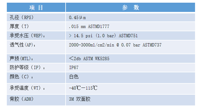 4、ePTFE 透氣膜性能參數